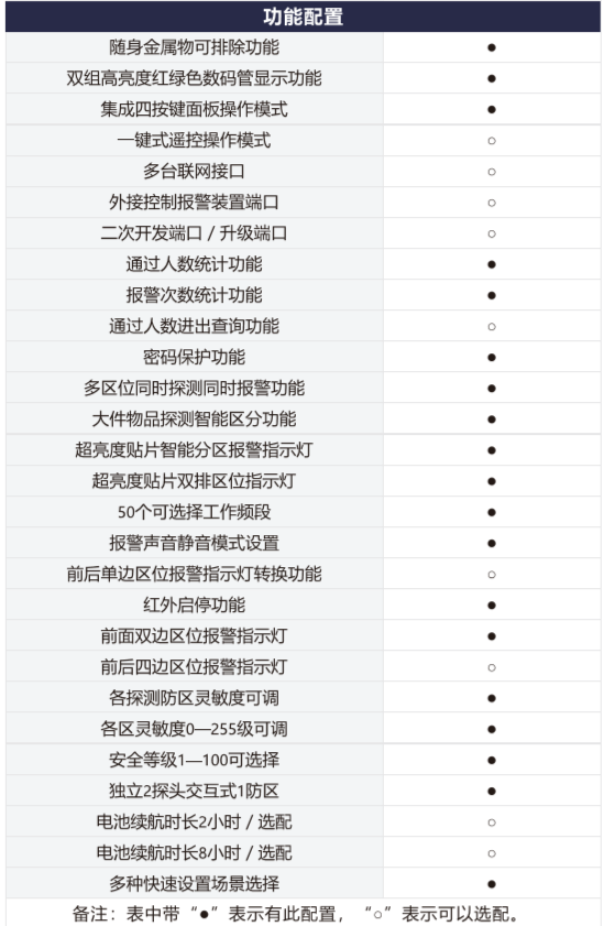 預先設定金屬物品重量、體積、大小、部位、排除鑰匙、首飾、皮帶扣等誤報警