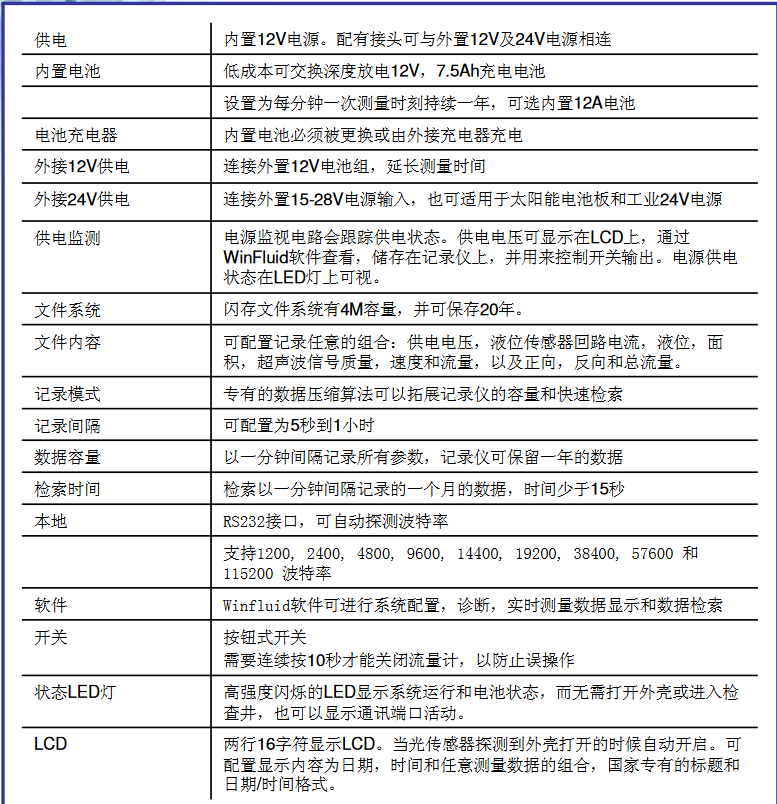英國HWM(豪邁)Mainstream IV便攜式超聲波明渠流量計產品技術參數: