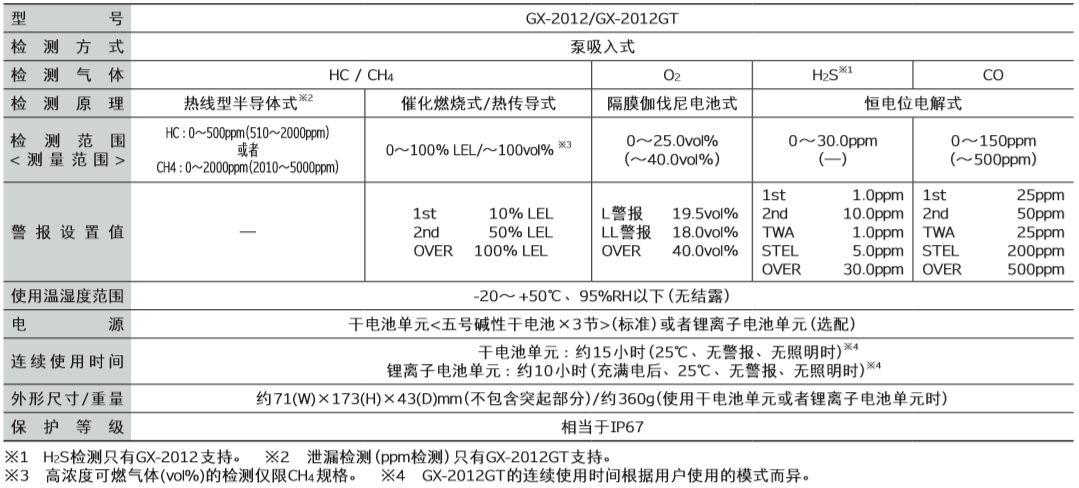 日本RIKEN(理研)GX-2012GT便攜式復合氣體檢測儀產品技術參數: