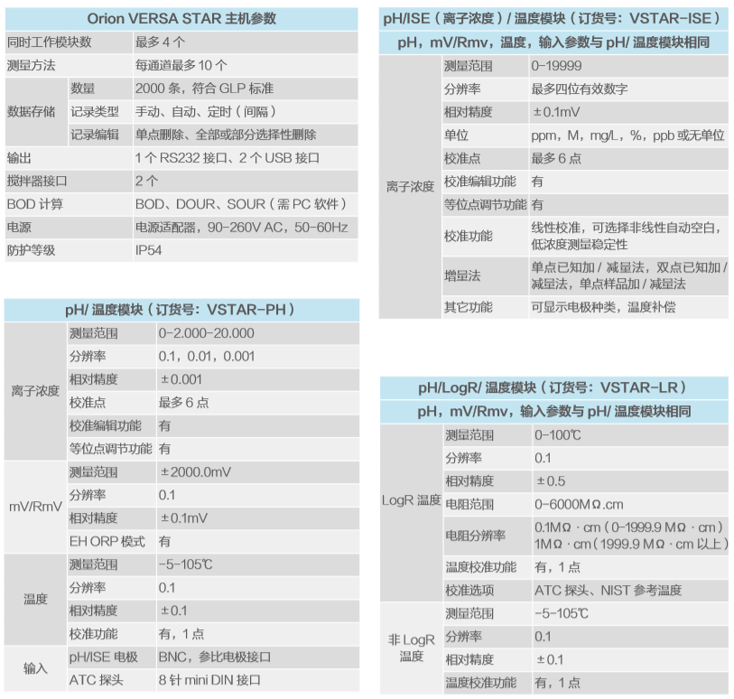 ?美國Orion奧立龍 VERSA STAR 臺式多參數(shù)測量儀產(chǎn)品技術參數(shù):?