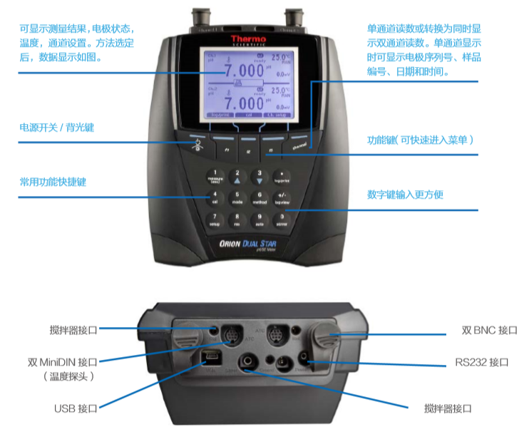 美國ORION奧立龍Dual Star 雙通道臺(tái)式pH/ISE式測量儀產(chǎn)品概述: