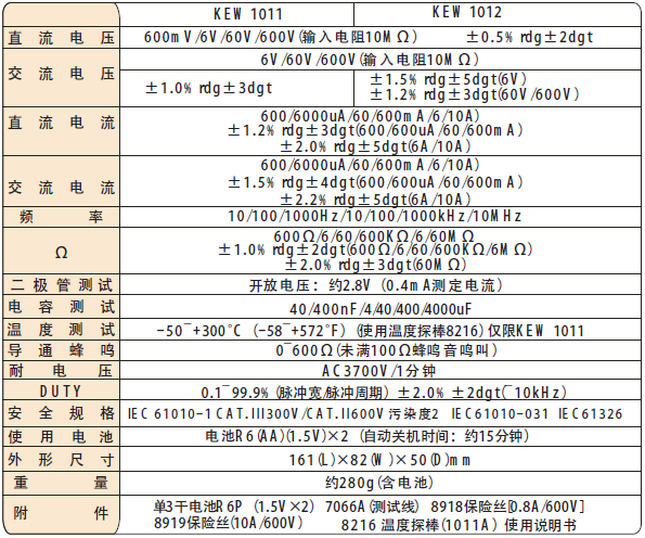 日本共立 KEW 1011/1012數(shù)字式萬用表 相關(guān)參數(shù):