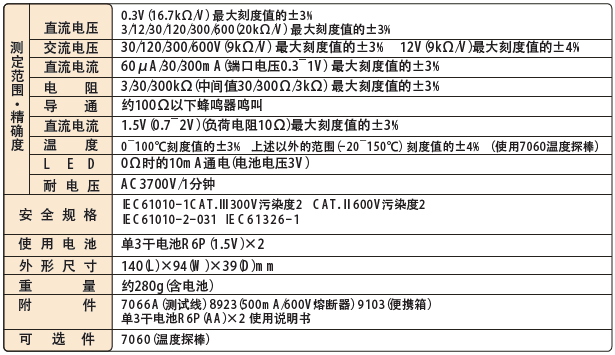 日本共立 MODEL 1110指針式萬用表 產(chǎn)品特點: