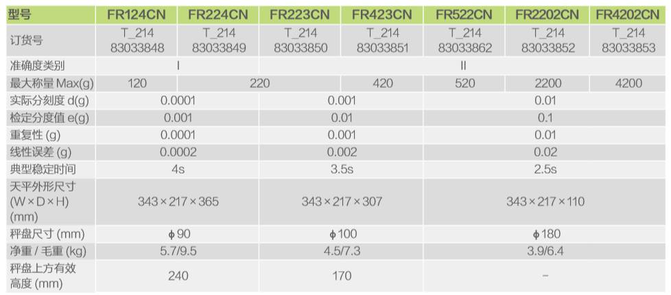 美國ORION奧立龍 ADVENTURER FR 系列通用分析 / 精密天平產品技術參數: