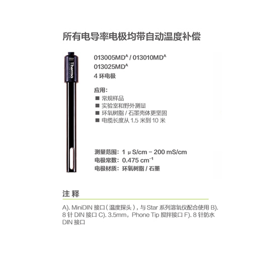 美國ORION奧立龍 013005MD常規(guī)水四環(huán)電導(dǎo)率電極產(chǎn)品介紹: