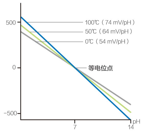 自動溫度補償電極向儀表輸入信號,自動校正溫度變化引起的電極斜率變化,從而得到溫度補償后的pH值。