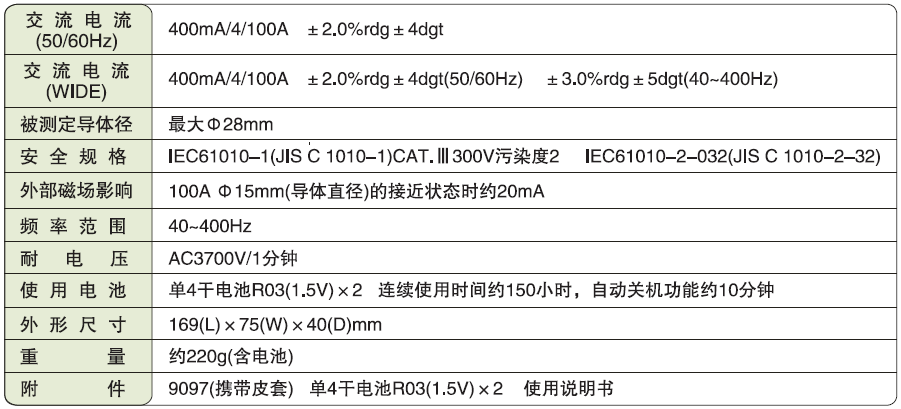 日本共立 MODEL2434泄漏電流鉗形表 相關(guān)參數(shù):