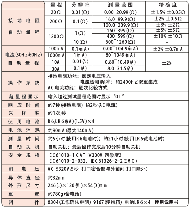 日本共立 KEW 4202接地電阻測(cè)試儀 相關(guān)參數(shù):