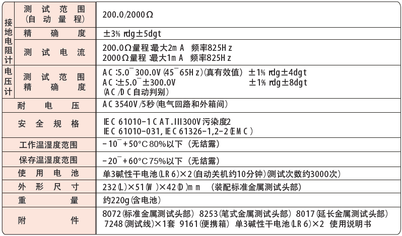 日本共立 KEW 4300接地電阻測試儀 相關參數(shù):